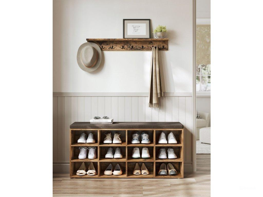 VASAGLE Lavica s botníkom 12 políc 104 x 48 x 30 cm hnedá