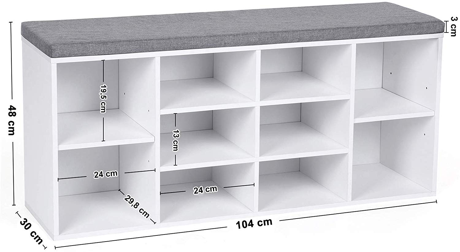 VASAGLE Botník s lavicou biely sivý 104 × 48 × 30 cm