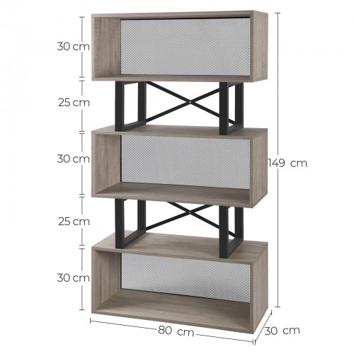VASAGLE Moderná knižnica sivý dub 80 x 149 x 30 cm