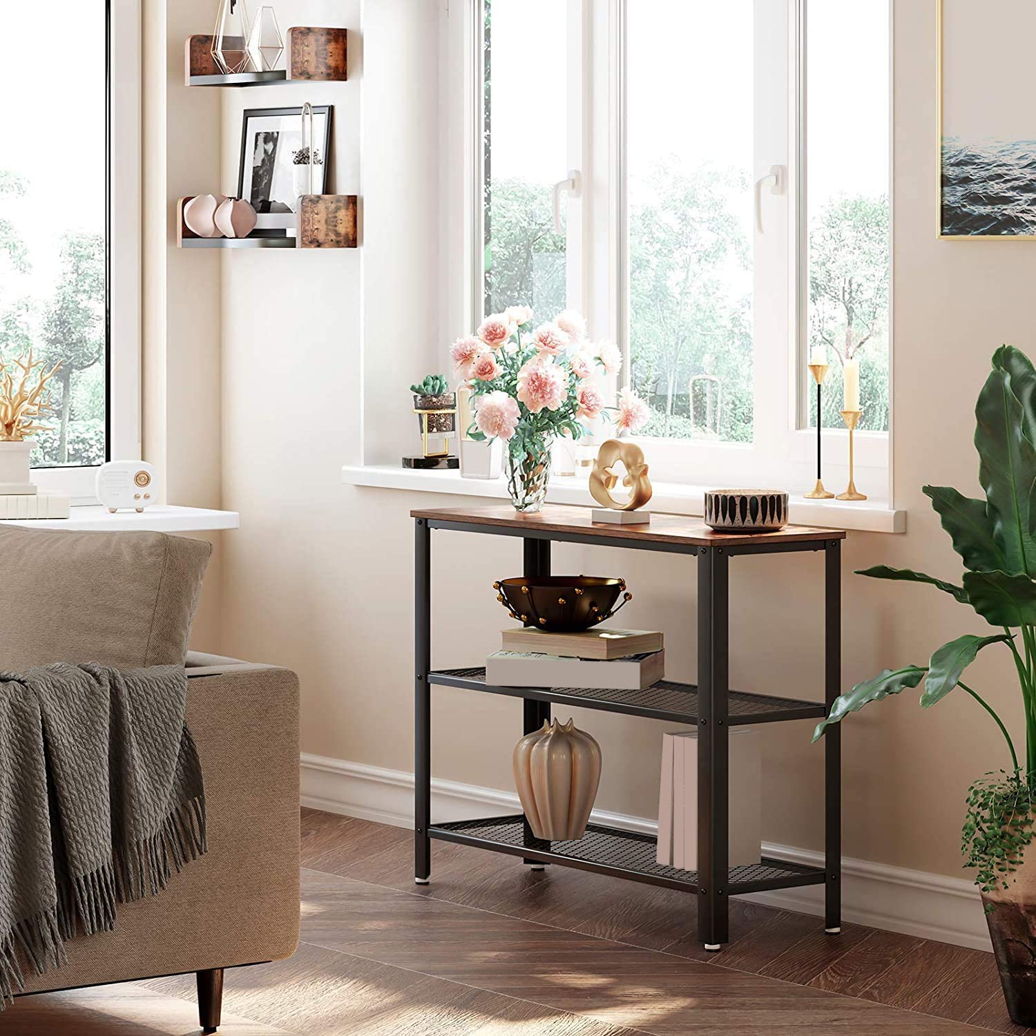 VASAGLE Priemyselný stôl 80 x 76 x 50 cm hnedý