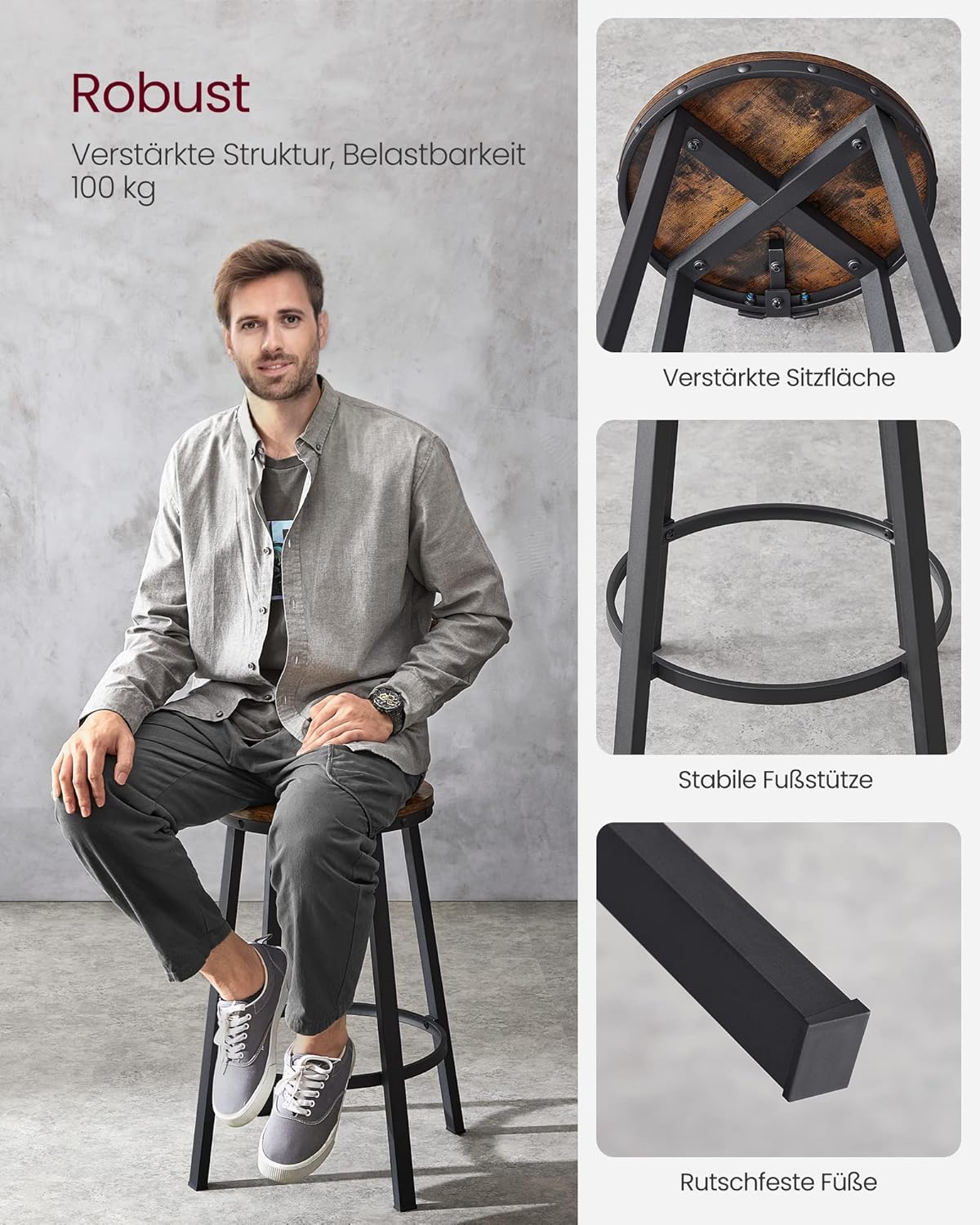 VASAGLE Okrúhla barová stolička RUSTIK 2 ks