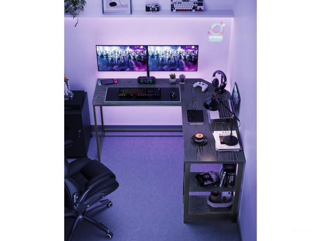VASAGLE Rohový stôl s policami, boxmi a stojanom na monitor