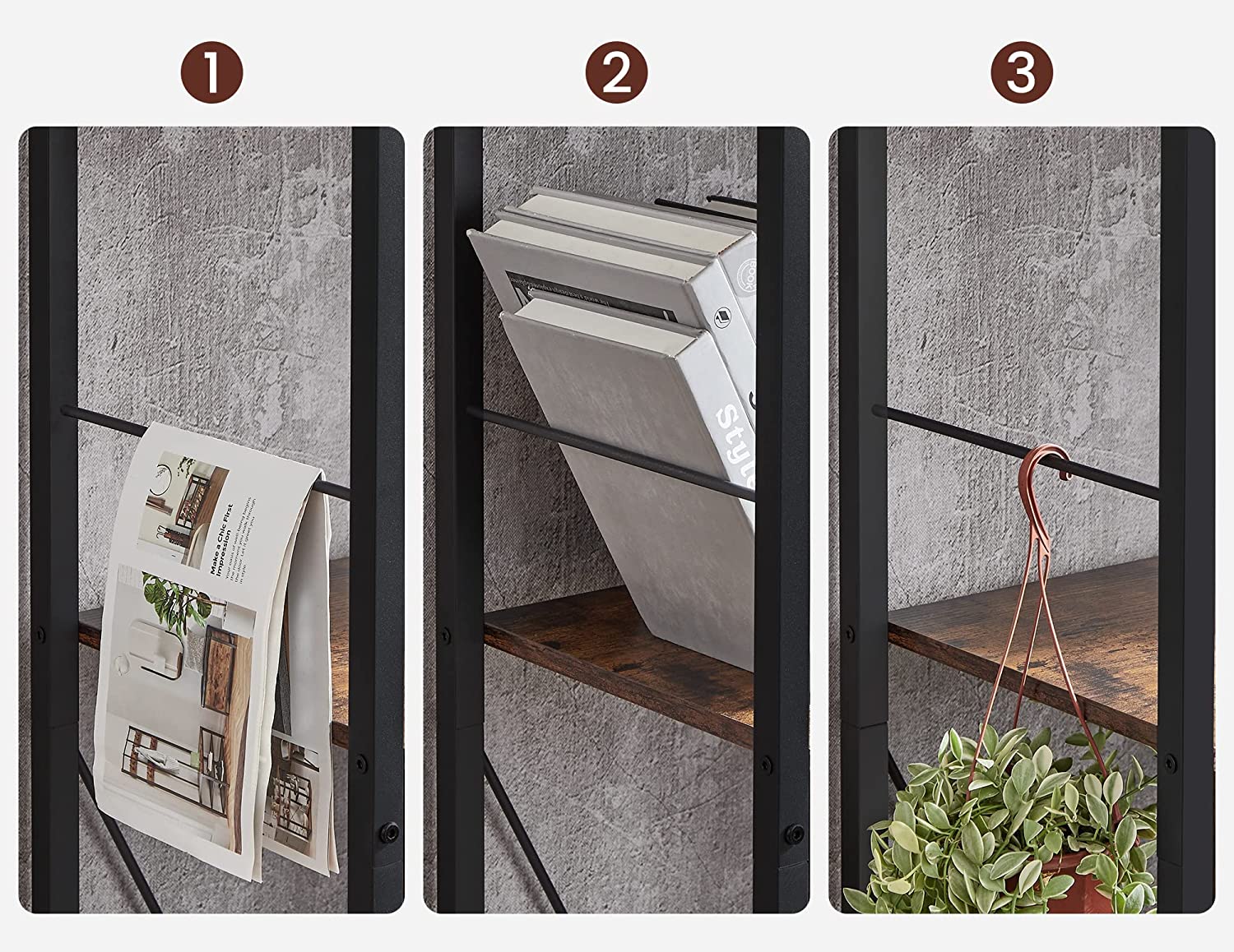 VASAGLE Priemyselná trojdielna knižnica 158 x 166 x 24 cm