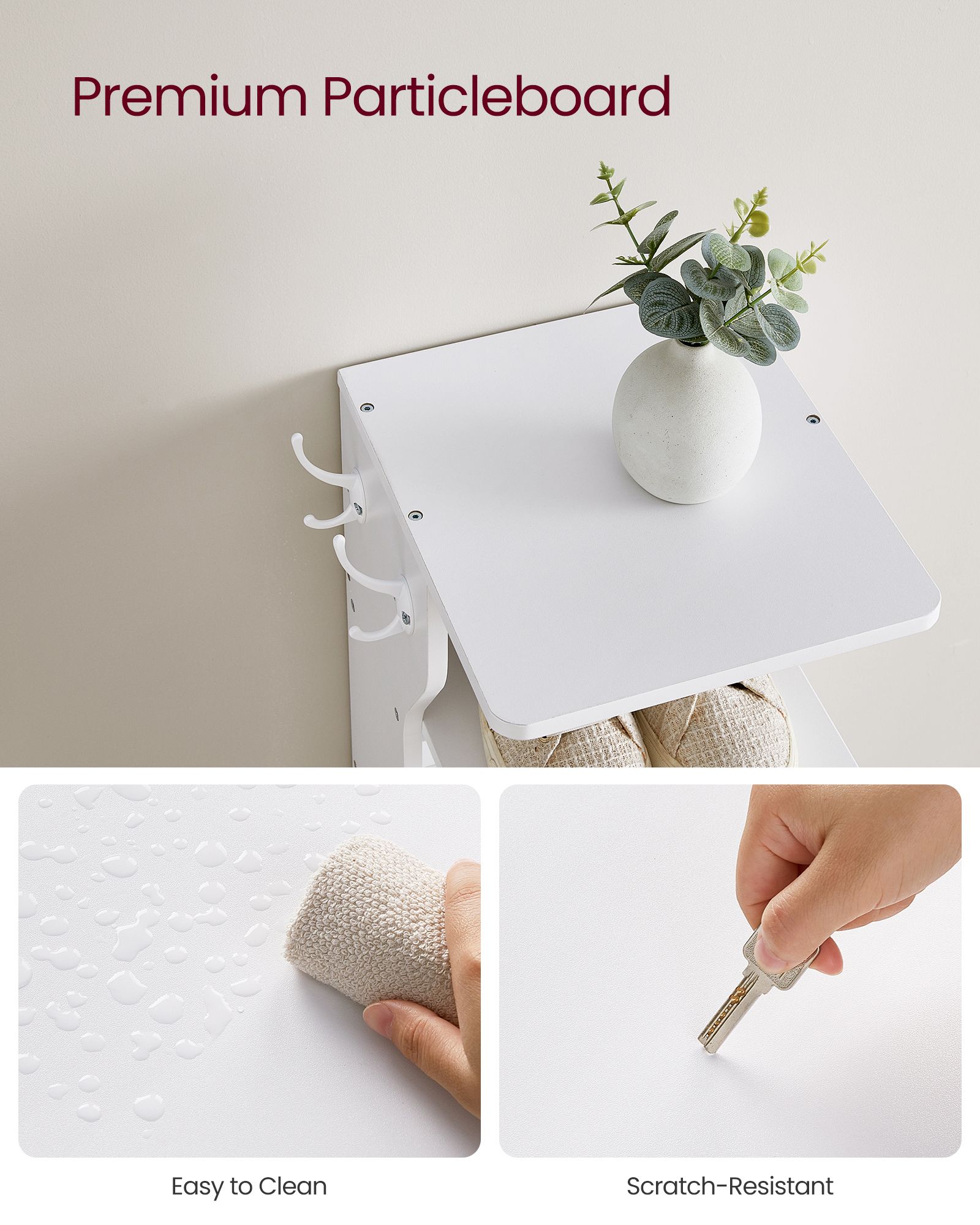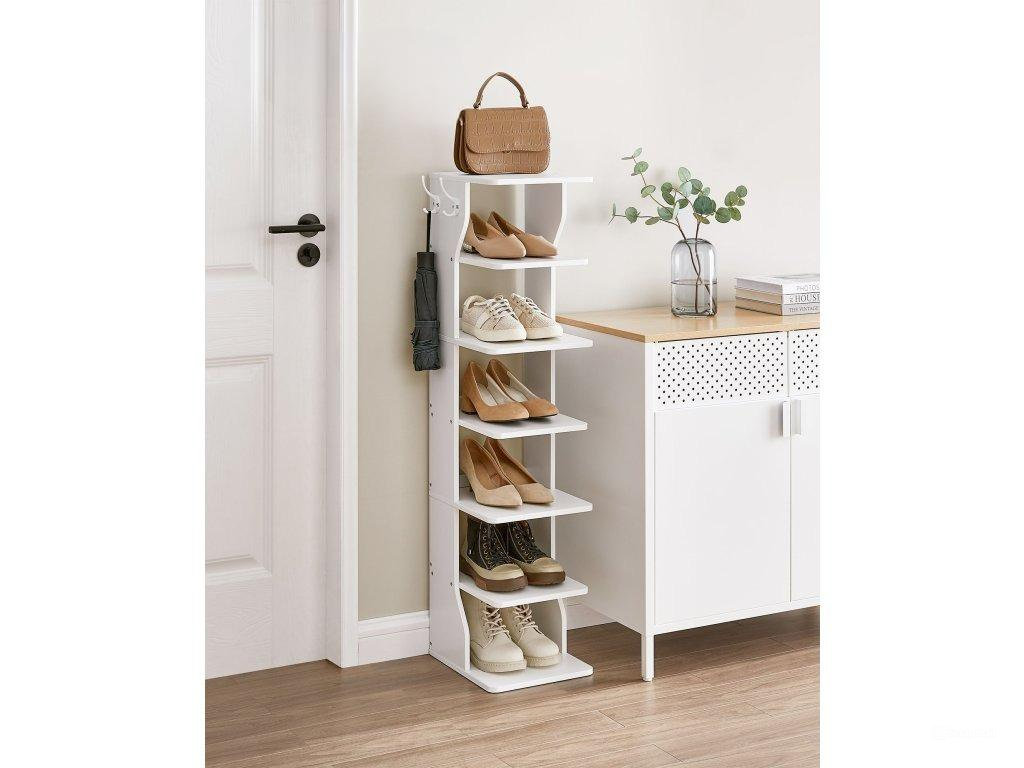 VASAGLE Regál na topánky 6 políc s háčikmi 26 x 110 x 30 cm biely