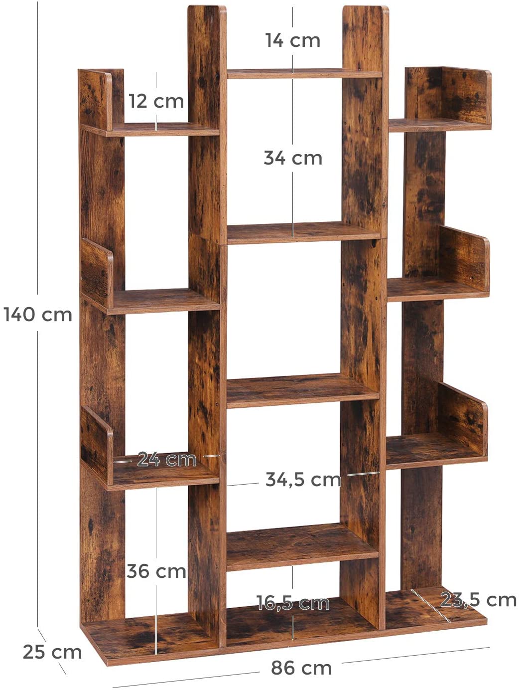 VASAGLE Stromová polica hnedá 86 x 140 x 25 cm