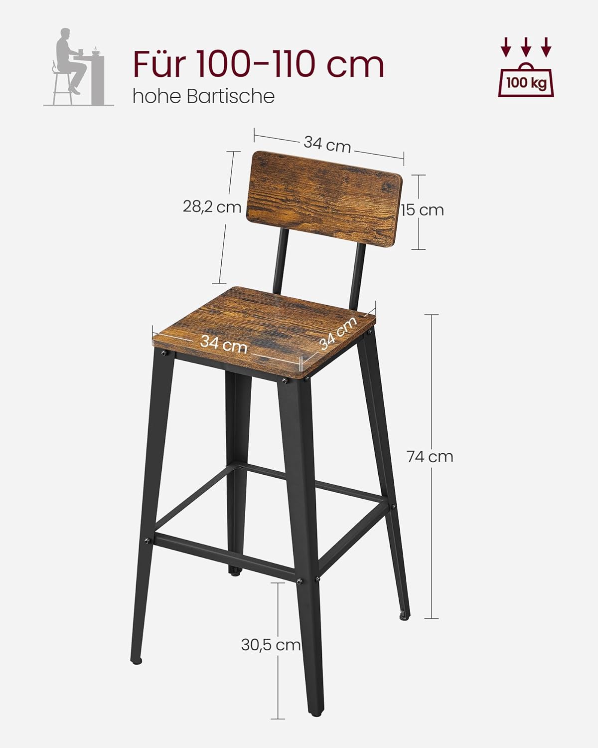VASAGLE Súprava dvoch barových stoličiek 39 x 100 x 39 cm