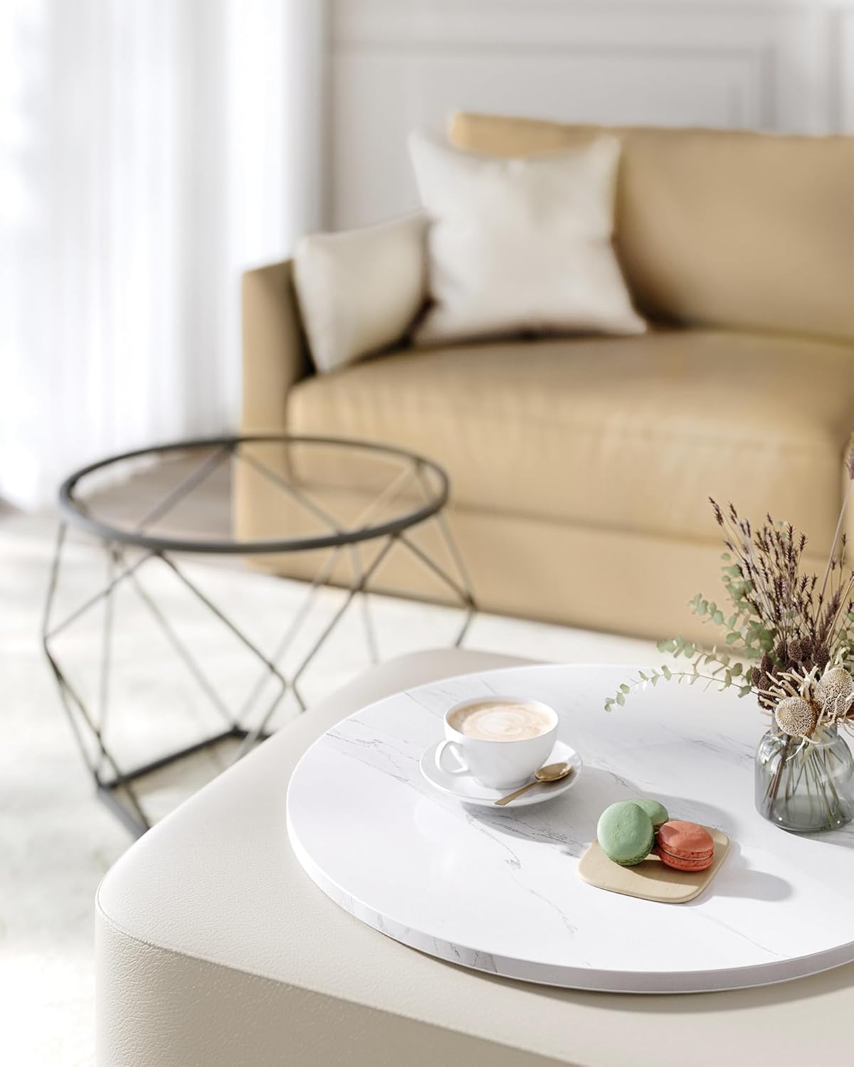 VASAGLE Súprava dvoch konferenčných stolíkov s okrúhlou doskou biely mramor