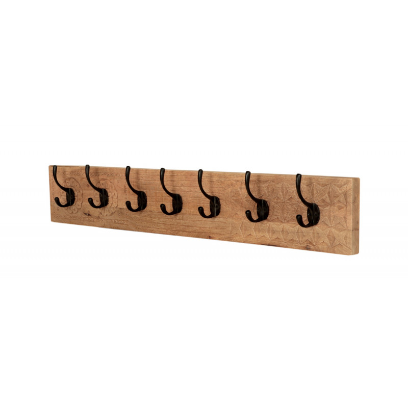 Nástenný vešiak z masívu Manu je vyrobený z kvalitného masívneho mangového dreva.Vešiak s 7 háčikmi z masívu je vyrobený z indického manga. Vešiaky na stenu z masívu, ktoré máme skladom, si môžete pozrieť v našom showroome. Indický koloniálny nábytok mango masív.