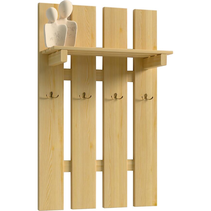 Vešiak S poličkou 4 Kov Rukoväť Borovica