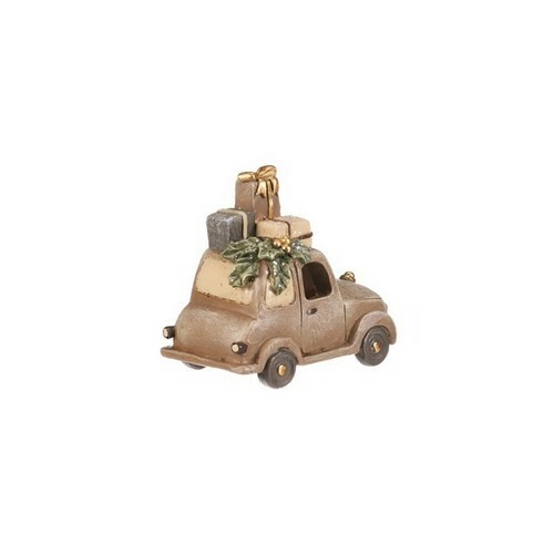 Vianočná dekorácia Auto s darčekmi, hnedá, polyresin, LED