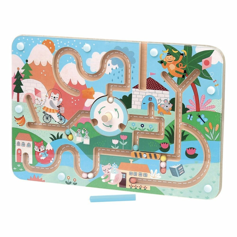 Uveďte deti do poetického sveta s ilustráciami Michelle Carlslundovej. Pomocou magnetického pera sa môžu pokúšať prihrať jednotlivým zvieratkám ich guľôčky. Dostane pán kocúr svoje mlieko, biele guľôčky? Rozverná opička svojej banány, žlté guľôčky? Komupak rozdať guľôčky ostatných farieb, priateľskému medvedíkovi, chytrej líške, alebo vrtkej myške? Na ceste čaká množstvo prekážok a nástrah, ktoré môžu deti prekonávať pomocou svojho dôvtipu.Zábavnou formou takto môžu trénovať jemnú motoriku či orientáciu v priestore. Pri snahe pomenovať vyobrazené zvieratká i deje a pochopiť súvislosti medzi nimi možno tiež rozvíjať poznávacie zručnosti. Bludisko a magnetické pero sú zábavné aj bezpečné vďaka magnetickému princípu.Cestujte s nami v naivnom a elegantnom svete dánskej ilustrátorky Michelle Carlslund, svete jemných farieb, ktorý je plný roztomilých medveďov a priateľských vtáčikov. V roku 2010, keď Michelle ešte študovala grafický dizajn, vytlačila doma svoje ilustrácie a skúsila ich predať na dizajnovom trhu, kde sa stretli s veľkým úspechom! Niekoľko obchodíkov chcelo začať predávať jej výtvory, a tak jej napadlo, že by bolo fajn začať podnikať. Michelle sa rýchlo stala uznávanou nezávislou ilustrátorkou. Dnes je možné jej ekologické grafické diela zakúpiť po celom svete v dizajnových butikoch, papiernictvach a detských obchodoch. Michelle sa inšpiruje všetkým okolo nej. Jej výtvory sú nežné a poetické, štylizovaný a detinský štýl, ktorý sa perfektne prelína s hračkami firmy Vilac. „Som hranolky milujúca, časová optimistka a tvorkyňa ekologických plagátov a ilustrátorka na voľnej nohe so sídlom v dánskej Kodani,“ to by povedala ilustrátorka Michelle Carlslundová, keby sa mala popísať jednou vetou.