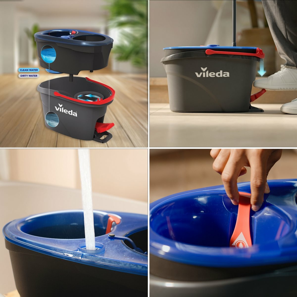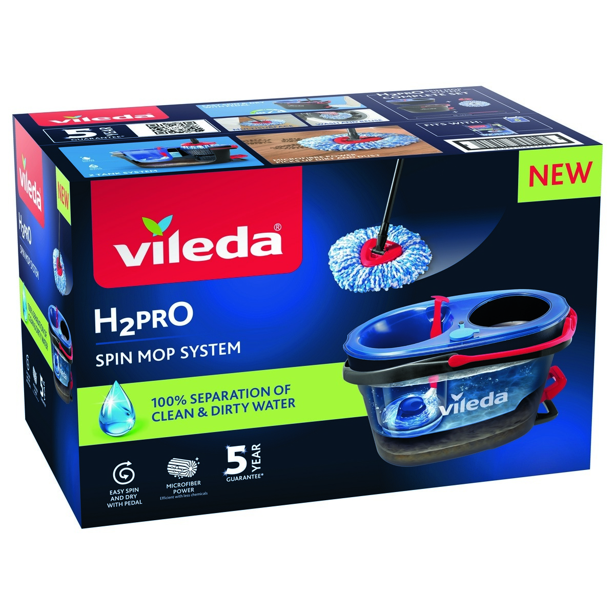 H2Pro strapcový rotačný mop od značky Vileda predstavuje moderné riešenie pre dokonalé upratovanie bez námahy. Je vybavený inovatívnym dvojkomorovým systémom vedra, ktorý oddeľuje čistú a špinavú vodu. Pri každom plákaní tak používate iba čistú vodu, čo zaručuje hygienickejšie a účinnejšie vytieranie všetkých typov tvrdých podláh. Elegantný dizajn v kombinácii čiernej, modrej a červenej farby dopĺňa praktická konštrukcia s dôrazom na stabilitu a jednoduché používanie.Vedierko je vybavené praktickým pedálom, ktorý umožňuje žmýkanie bez ohýbania a kontaktu rukou s vodou. Vďaka systému odstreďovania si môžete zvoliť ideálnu vlhkosť mopu podľa typu podlahy. Tento mechanizmus uľahčuje prácu a zaisťuje rovnomerné čistenie bez zbytočných kvapiek vody. Mop je vybavený trojuholníkovou hlavicou, ktorá ľahko dosiahne aj do rohov, pod nábytok alebo pozdĺž líšt, takže žiadne miesto nezostane nečisté.Strapce sú vyrobené zo 100% mikrovlákna, ktoré účinne zachytávajú nečistoty aj s menším množstvom čistiacich prostriedkov. Mop sa ľahko udržuje – návlek je možné prať v práčke, čím sa predlžuje jeho životnosť a zachováva čistota pri každom použití. Ergonomická teleskopická tyč (dĺžka 55-123 cm) sa pohodlne drží a prispôsobí sa výške používateľa. Tento model zaručuje kvalitu a dlhú životnosť, podporenú predĺženou zárukou 5 rokov.Hlavné výhody produktu