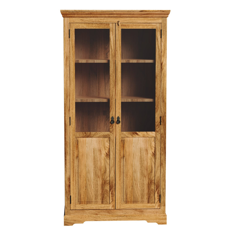 Vitrína masív Guru je vyrobená z kvalitného masívu mango. Vitrína z masívu je vyrobená z indického manga. Presklená vitrína má niekoľko políc. Vitríny z masívu, ktoré máme skladom si môžete pozrieť v našom showroome. Indický koloniálny nábytok mango masív.
