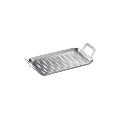 Nehrdzavejúci plech na pečenie s úchytmi je ideálny pre grilovanie drobných kúskov mäsa či zeleniny. Zachytáva šťavu, vďaka čomu je možné pokrm opakovane potierať a vytvoriť tak ešte lepší a chutnejší zážitok z jedla. Zároveň obmedzuje nechcené vzplanutie odkvapkávajúceho tuku a šťavy. Panvica je vhodná na vonkajšie grilovanie, svoje využitie nájde ale aj vo vašej kuchyni, pri príprave pokrmov v rúre.Jednoduchú manipuláciu s panvicou zaisťujú veľké bočné úchyty. Táto grilovacia panvica je vyrobená z kvalitnej nehrdz. ocele a je vhodná aj do umývačky riadu.