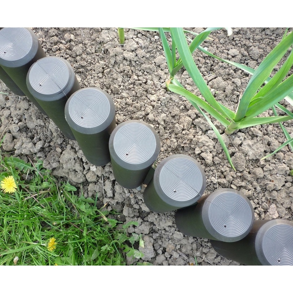 Záhradná kolíková palisáda vyrobená z kvalitného plastu je vhodným pomocníkom pri zakladaní záhonov, ktoré tak jednoducho oddelíte od cestičiek či trávnikov. Vďaka tvaru a prispôsobeniu jednotlivých modulov, ktoré na seba skvele nadväzujú, je možné vytvoriť rôzne tvary záhonov. Výhodou je jednoduchá inštalácia, kedy sa obrubník jednoducho zasunie do pôdy.Jedno balenie obsahuje 8 modulov s celkovou dĺžkou 2 m.Rozmer jedného modulu: