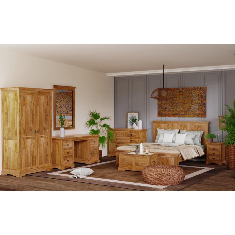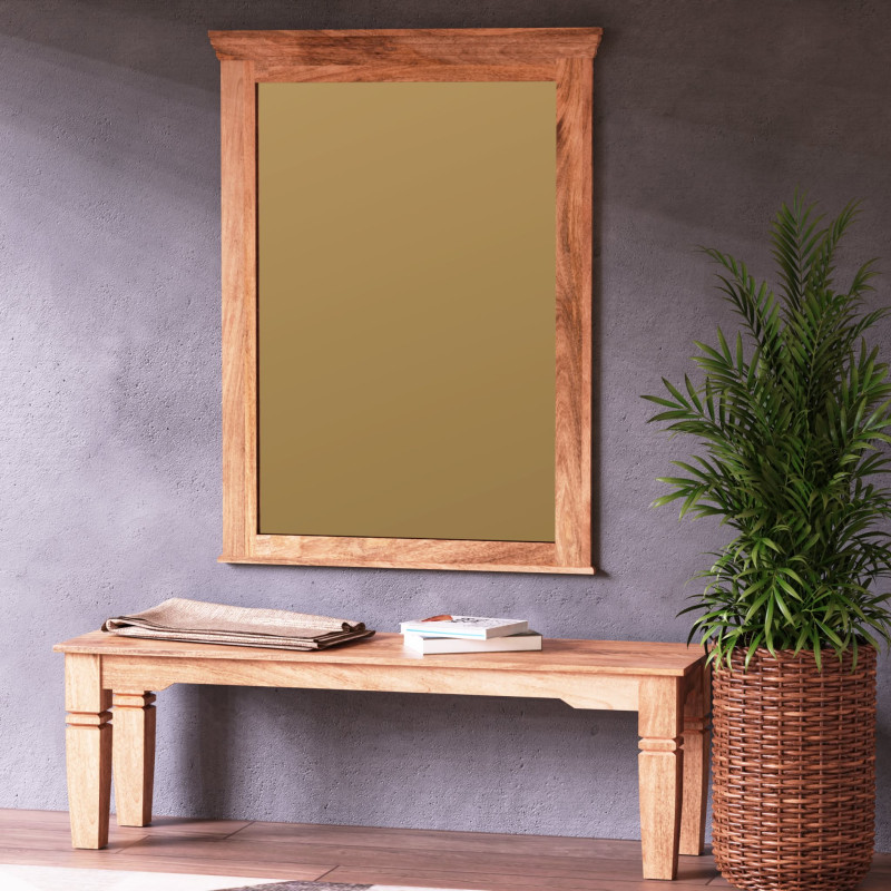 Zrkadlo je vyrobené z masívu manga a prinesie do vášho domova eleganciu a trvanlivosť. Naše zrkadlá z masívu sú dostupné v našom showroome a umožnia vám pridať kúsok indického koloniálneho nábytku mango masív do vášho interiéru. Navštívte nás a objavte našu kolekciu.Zrkadlo Guru vyrobené z kvalitného masívneho mangového dreva o rozmeroch 90×120 cm je skvelým doplnkom pre vašu domácnosť. Jeho priestranná veľkosť umožňuje plné zrkadlenie a poskytuje dostatočný priestor na sledovanie svojho odrazu.Mangové drevo je známe svojou pevnosťou, trvanlivosťou a prírodnou krásou. Zrkadlo Guru využíva túto výnimočnú kvalitu dreva, čo mu dodáva eleganciu a šarm. Masívny rám z masívu mangového dreva pridáva prírodný prvok a vytvára teplý a útulný pocit v miestnosti.Dizajn zrkadla Guru je jednoduchý, no elegantný. Jeho hladký povrch a čisté línie mu umožňujú zapadnúť do rôznych interiérových štýlov. Bez ohľadu na to, či máte tradičný, moderný alebo rustikálny interiér, zrkadlo Guru bude vynikajúcim doplnkom, ktorý pridáva štýl a charakter do vášho priestoru.Rozmery 90×120 cm robia zrkadlo Guru dostatočne veľkým, aby zaujímalo centrálnu pozíciu na stene. Môžete ho umiestniť do predsieňe, spálne, obývacej izby alebo akéhokoľvek iného miesta, kde potrebujete praktický nástroj na zrkadlenie, ako aj dekoratívny prvok.Zrkadlo Guru z masívneho mangového dreva je kvalitne spracované a vyrobené s dôrazom na detaily. Jeho robustný rám a odolná konštrukcia zabezpečujú dlhú životnosť a spokojnosť s jeho používaním.Ak hľadáte zrkadlo, ktoré kombinuje funkčnosť a prírodnú krásu masívneho mangového dreva, zrkadlo Guru je skvelou voľbou. Jeho rozmerom 90×120 cm vytvára pôsobivý vizuálny efekt a bude vyniknúť ako štýlový a elegantný prvok vo vašej miestnosti.